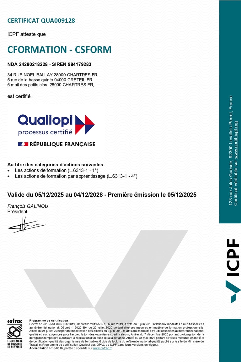 Certificat QUALIOPI