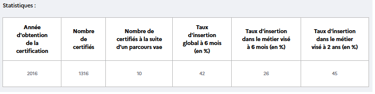 Des qualifications partielles, sous forme de certificats de compétences professionnelles (CCP), peuvent être obtenues en suivant un ou plusieurs Bloc :