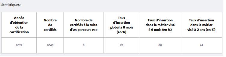 Statistiques nationales (source France compétences)