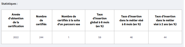 Statistiques nationales (source France compétences)